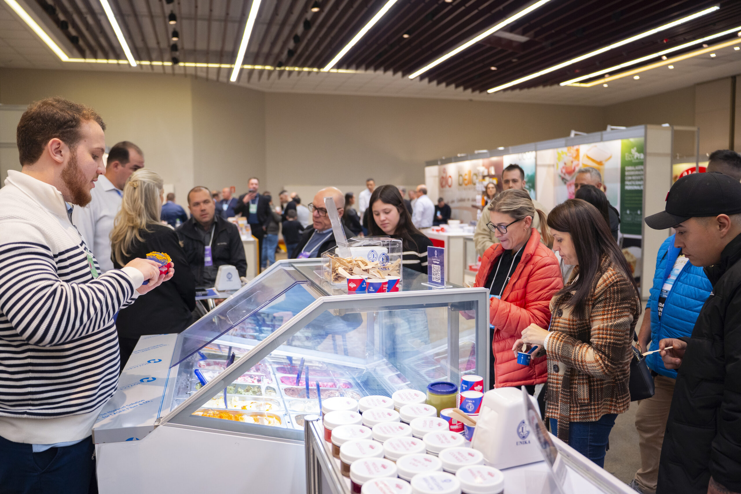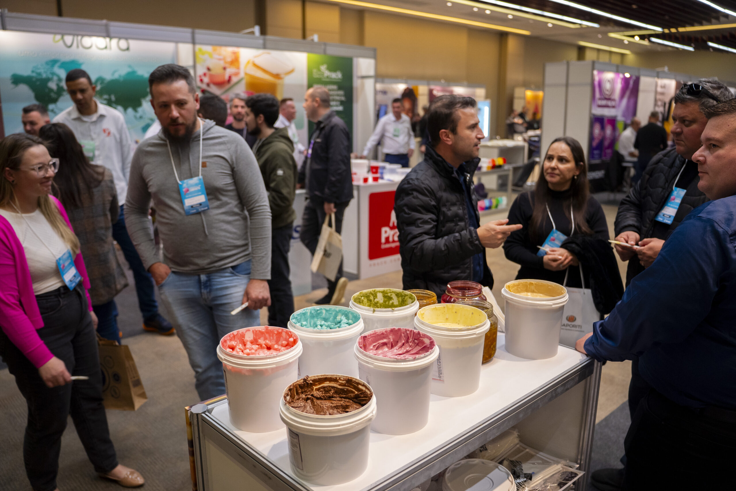Entre as mais de 30 marcas fornecedoras que prospectaram e fizeram negócios no evento estava a GlobalSip. A indústria catarinense colocou em destaque no estande o ?PRe Industrial SIP 2000, uma máquina móvel equipada com tecnologia avançada para a limpeza e higienização de componentes internos e externos. Visando a entrada em sorveterias e estabelecimentos do gênero, a gaúcha Guimarães trouxe para a Jornada seu portfólio de paçoquinhas e outros itens de complemento aos gelados. A tendência global Pistache Dubai foi evidenciada pela Doremus, empresa de São Paulo especializada em aromas e ingredientes. A combinação é oferecida como um recheio tentador, unindo tradição árabe e sofisticação contemporânea.